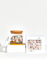 Each JIGGY puzzle comes in a reusable glass jar and includes a tube of puzzle glue, a straight-edge tool to spread the glue and a print of the art to follow.